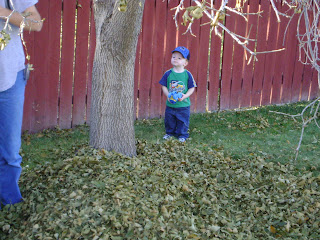 This was a great afternoon outside with the boys! Scott made a huge pile for Zane to play in and he did. It took him a few minutes to relize that this could be fun! Tyson just sat by and watched.